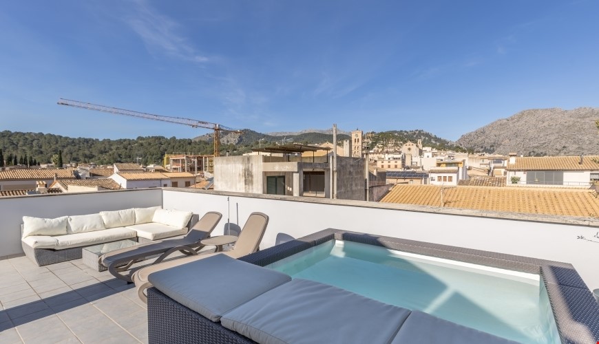 Penthouse with Private Terrace and Fantastic Views for Sale in Pollenç, Mallorca Discover this exclusive penthouse in the heart of Pollenç, unique opportunity to enjoy the authentic Mediterranean lifestyle in one of the most sought-after areas in the north of Mallorca. The property offers three spacious double bedrooms and two full bathrooms, perfectly distributed to ensure comfort and privacy. The fully equipped kitchen is functionally integrated into the living space, ideal for both everyday living and entertaining guests. Natural light is key feature throughout the property thanks to its excellent orientation, creating warm and welcoming atmosphere all day long. Outside, the property boasts magnificent private terrace with jacuzzi and fantastic views true privilege in the town centre perfect for relaxing, sunbathing, or enjoying pleasant evenings outdoors. Located in central area, just steps away from all amenities, shops, and restaurants, this penthouse combines space, brightness, exclusivity, and an unbeatable location. property ready to move into and enjoy from day one! Don´t miss this unique opportunity to make your dreams come true, call us today to arrange visit and discover this beautiful place for yourself! Maria +34 651 149 122 - maria@living-pollensa.com