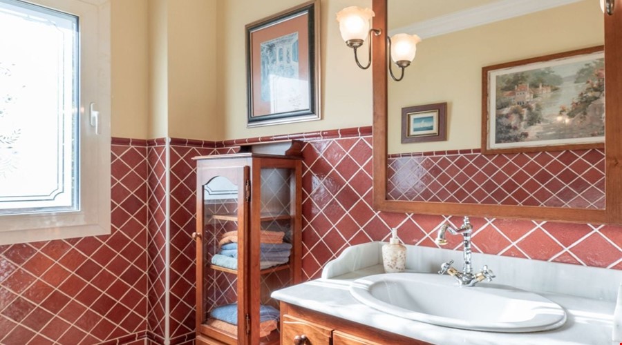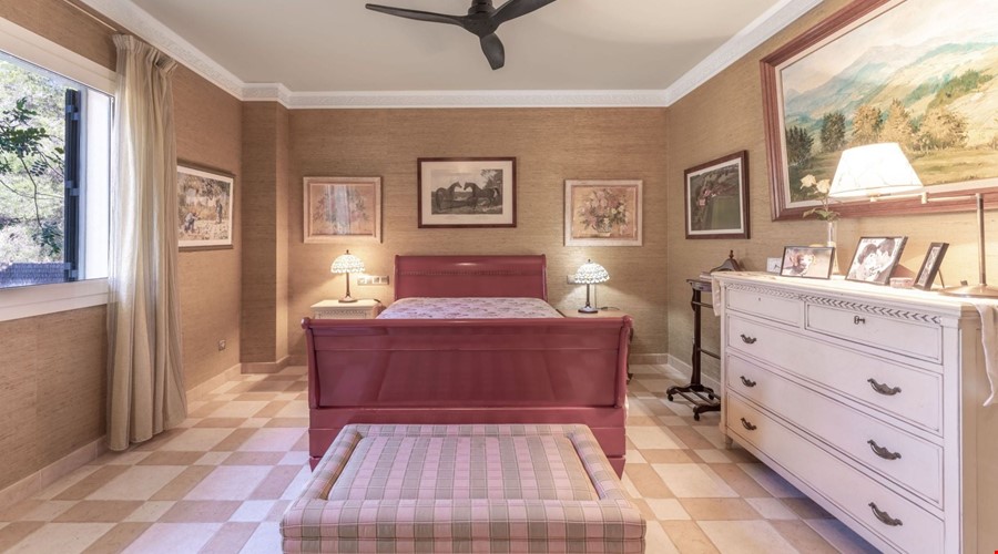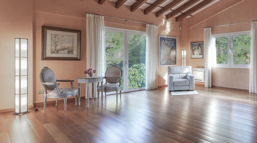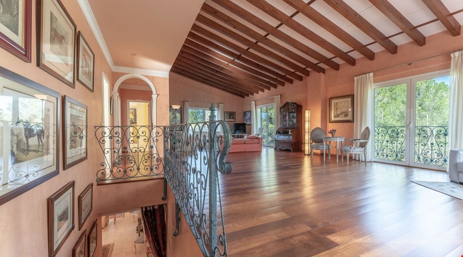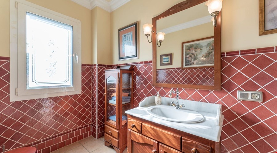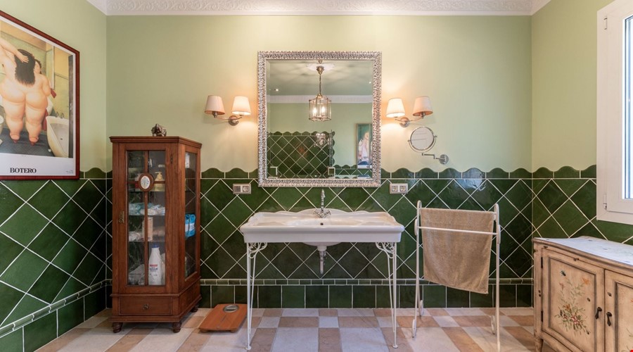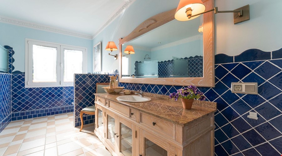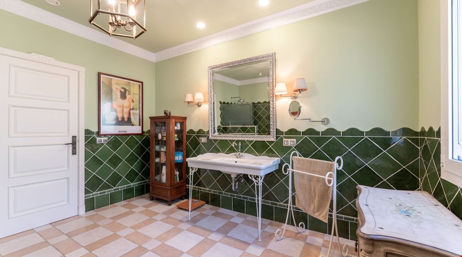 Inside, the house feels substantial. The construction is solid, following the traditional Mallorcan style with stone details and thick walls, but it has been maintained to a high modern standard. The ground floor is laid out for utility and social life. There is a large kitchen-diner that acts as the hub of the home, leading into a separate formal dining room and a bright lounge. Two double bedrooms are located on this level, which is a smart layout for guests or family members who prefer to avoid stairs. The bathrooms here have that classic Mallorcan tile work and are in excellent condition.