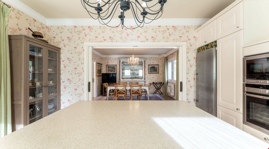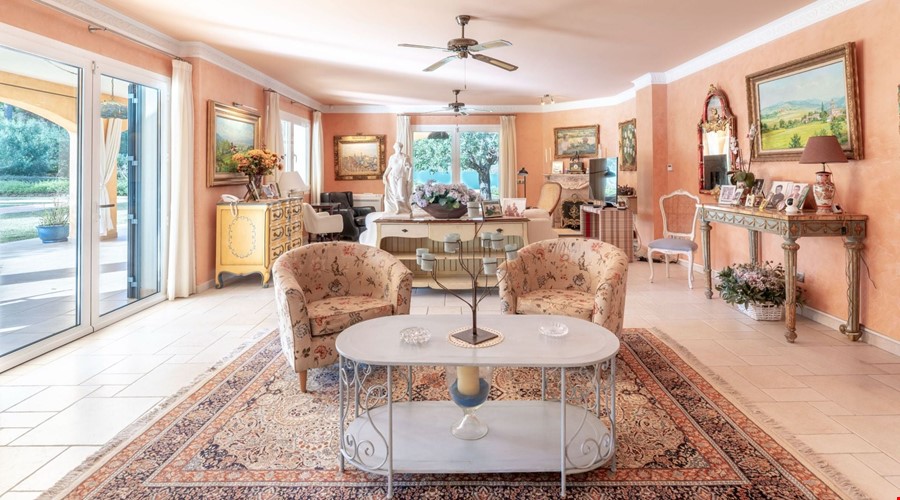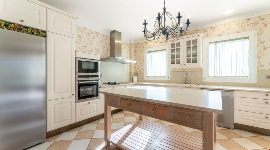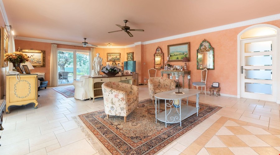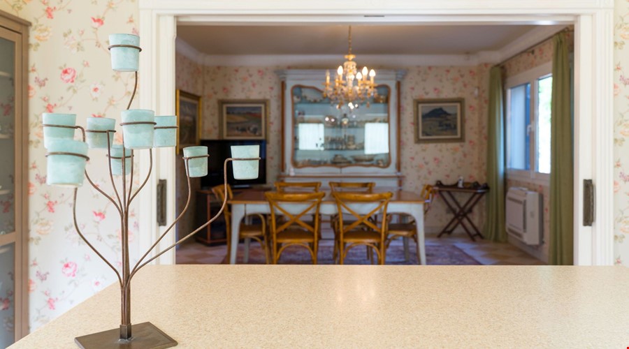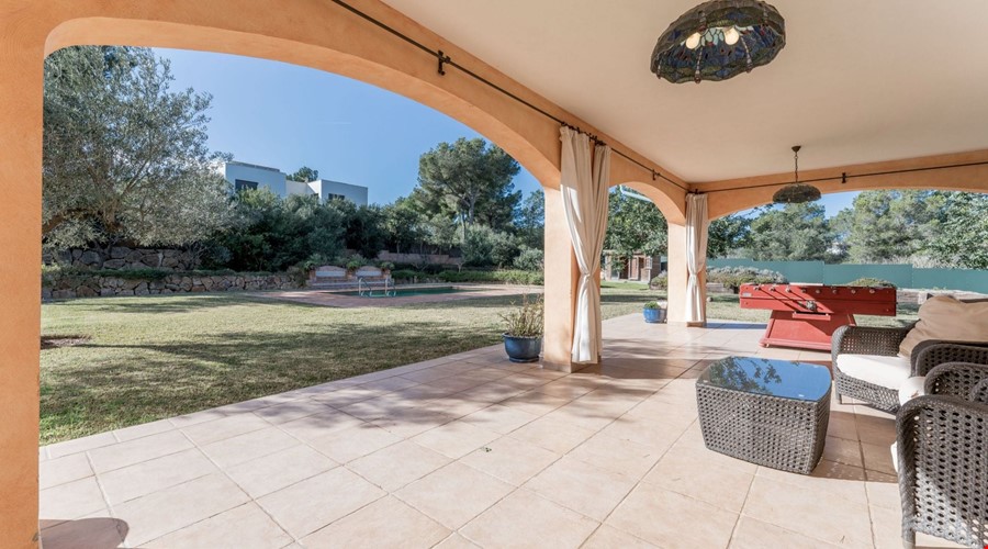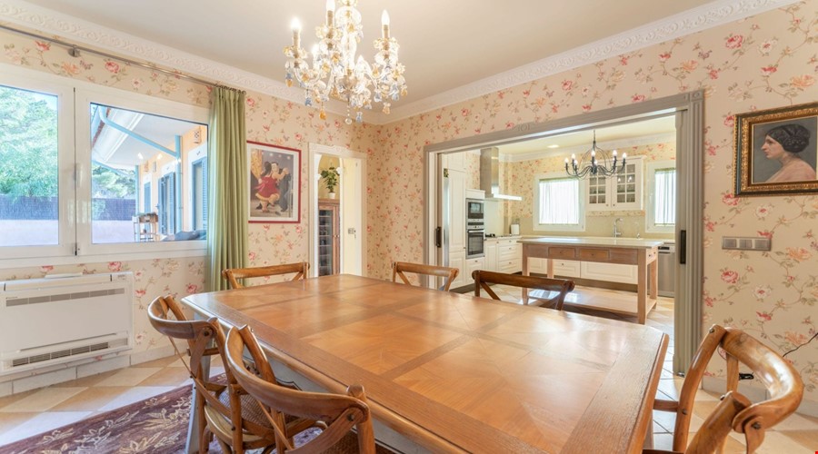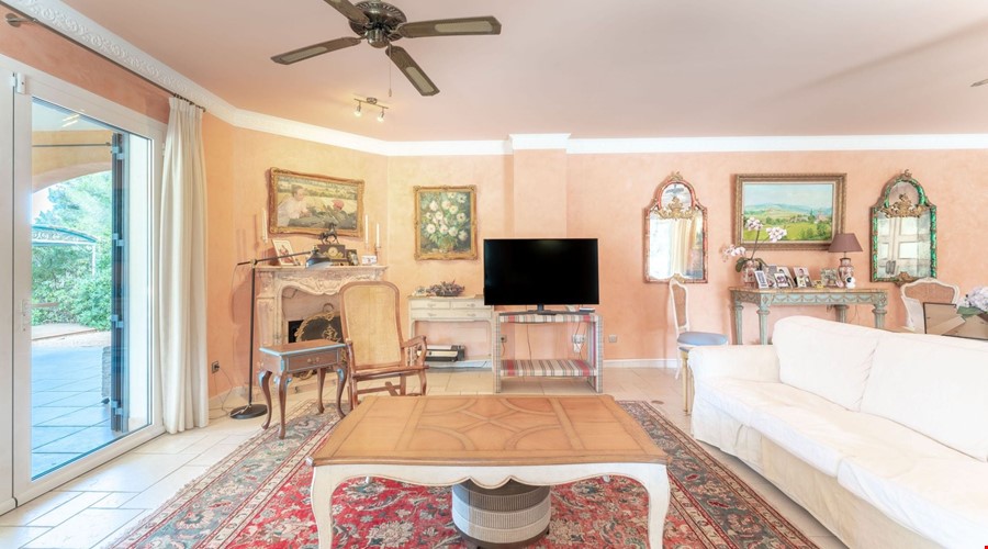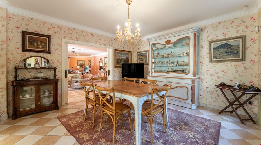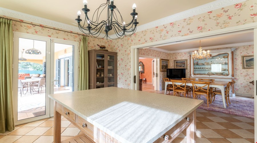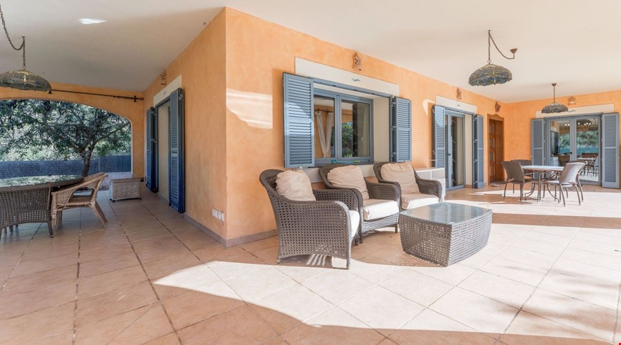 One of the most compelling aspects of this villa is its potential for reconfiguration. If you prefer the modern aesthetic, the current layout allows for the creation of a massive open-plan living and dining area on the ground floor. The bones of the house are excellent, and the high ceilings give you the vertical space to work with. Outside, the covered porch is deep enough to provide genuine shade during July and August, overlooking a pool that is positioned to get sun throughout the day.