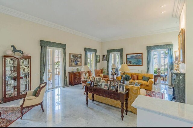 The villa is distributed over two levels, with each space carefully designed to maximise natural light and panoramic views. On arrival, a grand marble entrance hall and an impressive staircase set the tone for the rest of the property.