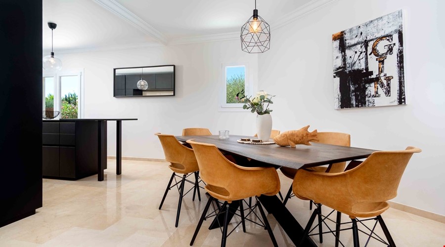 This beautifully renovated four bedroom villa in Sa Torre offers an exceptional combination of Mediterranean charm, modern comfort, and spectacular sea views. Located in the second sea line, the property enjoys unobstructed vistas over the Bay of Palma and the Tramuntana Mountains, creating a truly unique backdrop for everyday living or unforgettable holidays. Set on a plot of 1,075 m2, and a generous living space of approximately 321 m2 the villa provides ample room for the whole family. Four bright bedrooms ensure plenty of privacy and flexibility. With the three uperlevel bedrooms each have a private balcony and one with panoramic views. The master suite features an elegant en-suite bathroom with bathtub, and a spacious dressing room and spectacular sea views all the way to Palma, Calvia, and the mountains beyond. The open-plan living and dining area seamlessly connects to a large terrace ideal for al fresco meals and relaxation, while the modern kitchen with an adjoining utility room caters to every culinary need. Outside we have a stunning 65 m2 pool area surrounded by palm trees invites you to unwind and enjoy the Mediterranean lifestyle. Additional highlights include a double garage and extensive renovations completed in 2021. This villa is a wonderful opportunity to acquire a home with prime location, space, and style on Mallorca’s beautiful south coast.