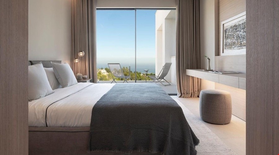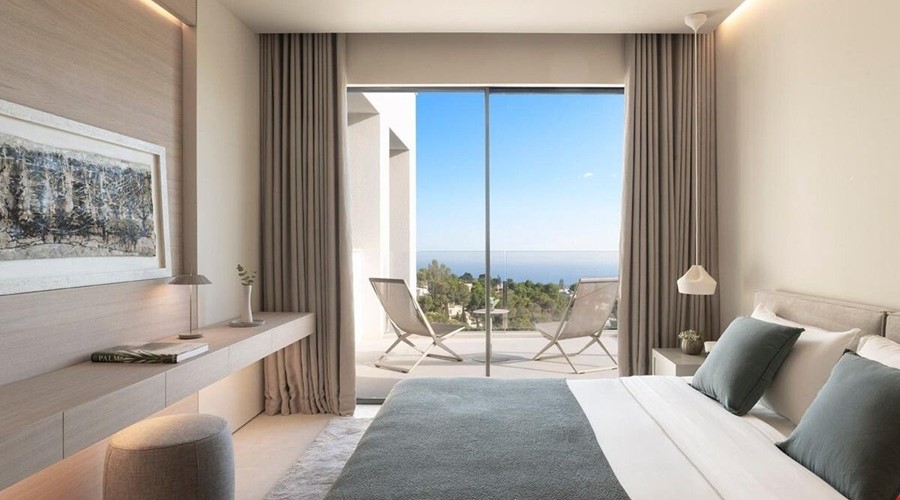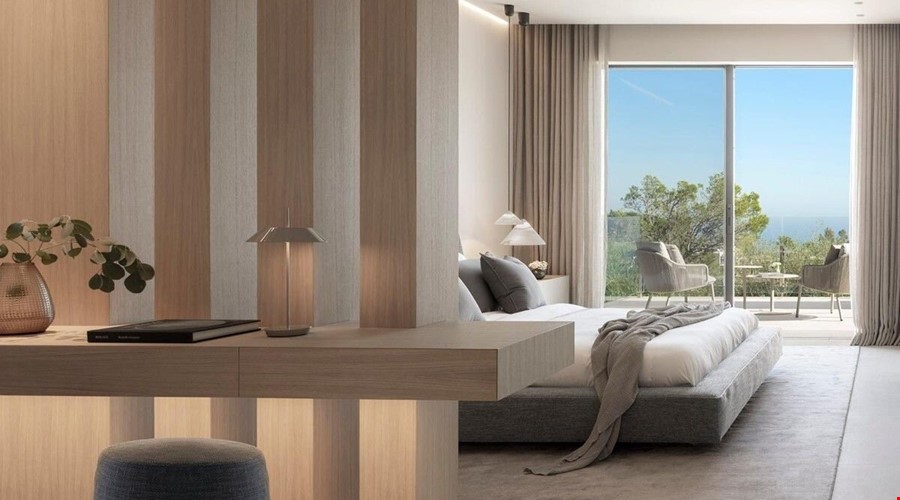 Fully equipped Poliform kitchen, light-flooded living/dining room with fireplace and fantastic sea views, 1 master bedroom with dressing room and en suite bathroom and outdoor shower, guest WC