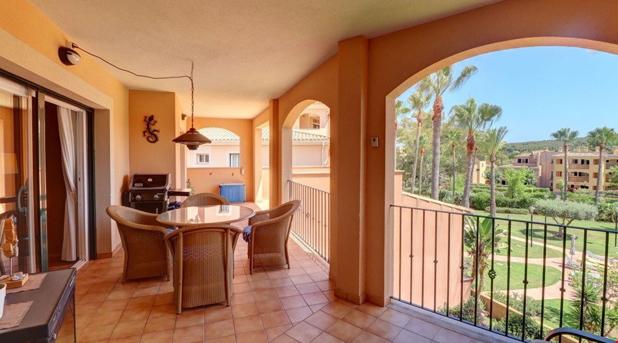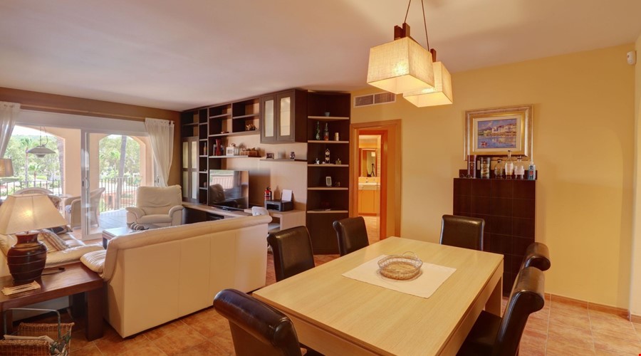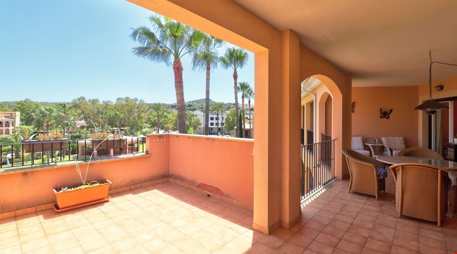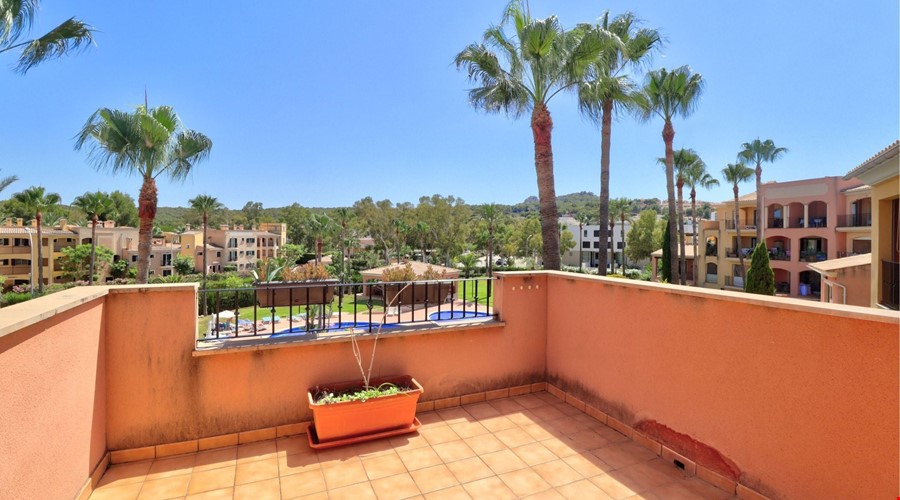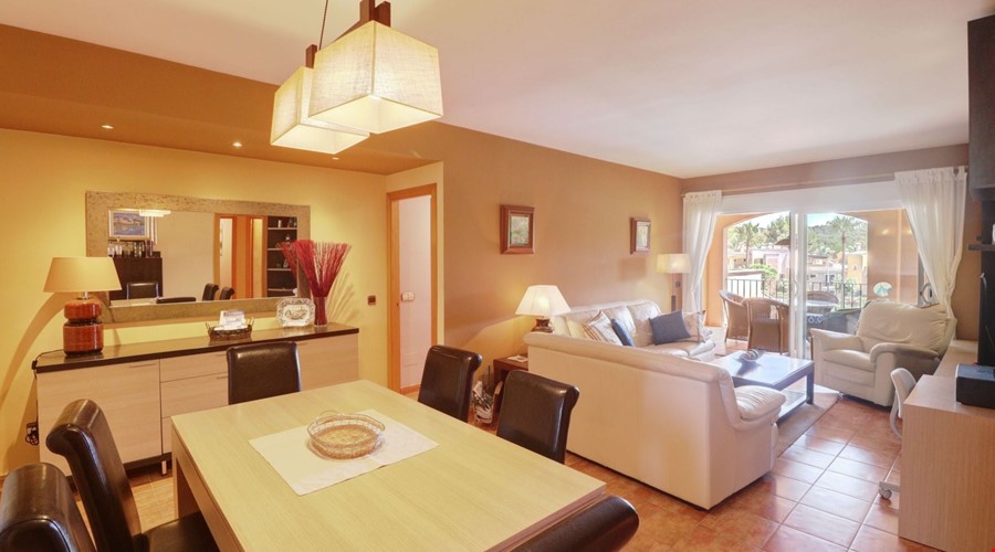 This is a penthouse apartment that avoids the typical compromises of living in the center of a busy coastal town. Located in a quiet, family-orientated community in Santa Ponsa, the property sits on the second floor of a development built in 2005 called Flor de Golf, phase 2. The immediate impression upon entering is one of space and light, largely due to the 127 m2 of interior living area and a layout that connects the main lounge directly to a bright terrace.