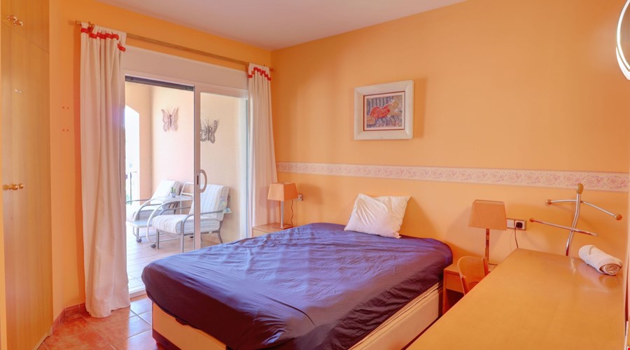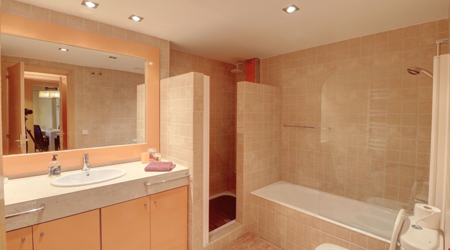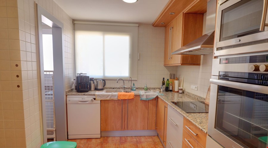 The apartment features three double bedrooms, making it a practical choice for a growing family or a couple who requires dedicated office space without sacrificing a guest room. With three full bathrooms, the morning rush is easily managed. A significant advantage of this specific unit is its position on the top floor, which ensures no neighbors are living above you. The 14 m2 terrace serves as a natural extension of the living space, providing a bright outdoor area with a direct view over the communal swimming pool.