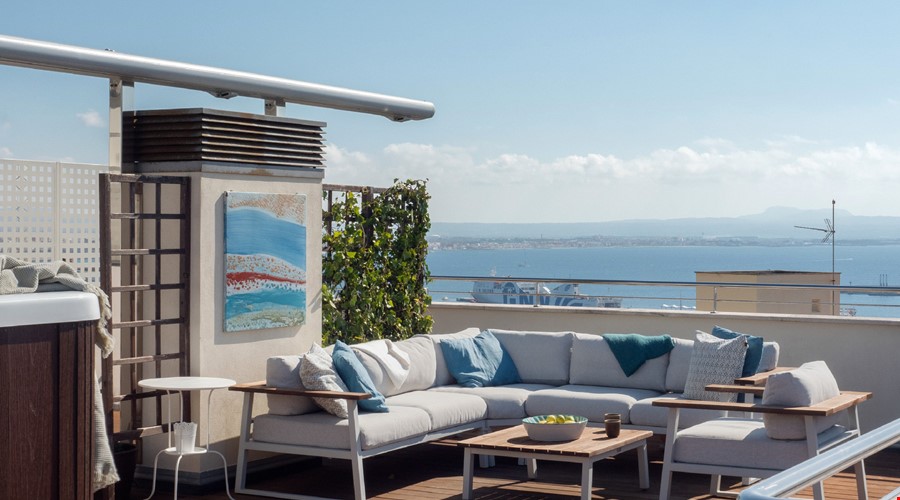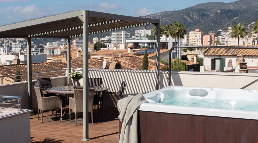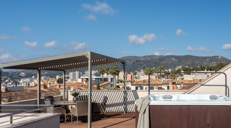 The spaces you get include a jacuzzi, outdoor shower, outdoor kitchen, two dining areas and a lounge area - perfect for those looking for a penthouse with a large roof terrace in Palma for social events, relaxation and premium outdoor living.
