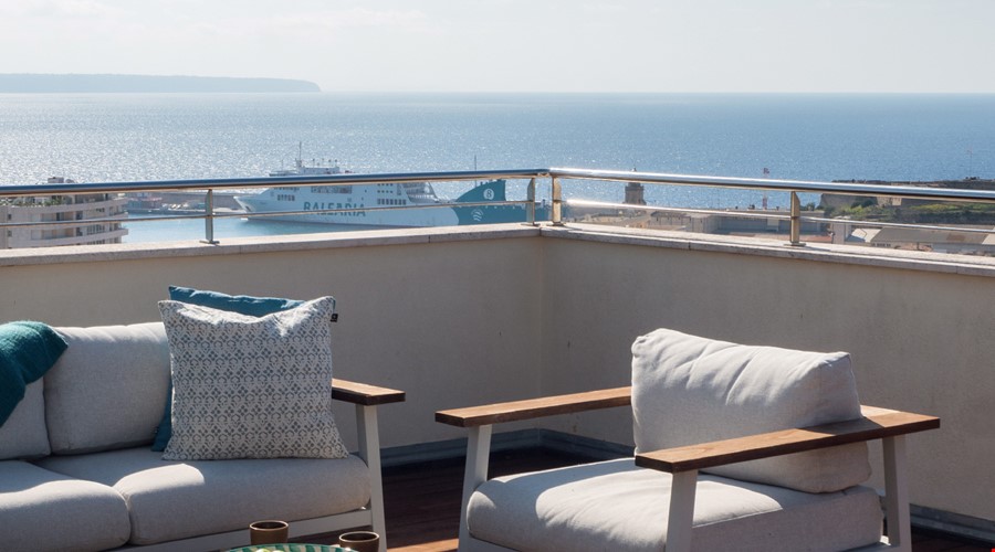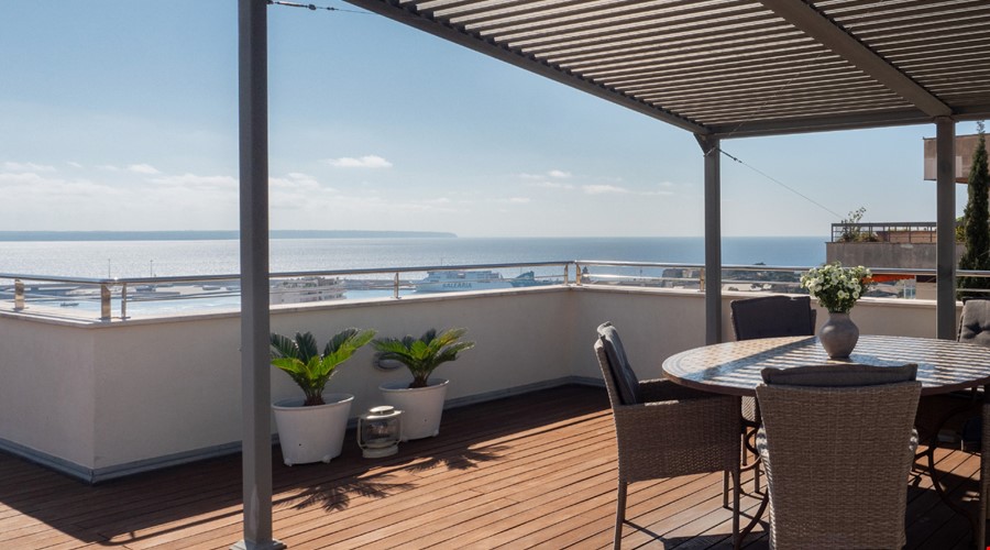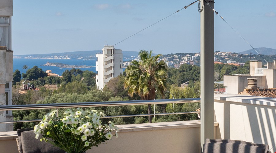 This penthouse with roof terrace in La Bonanova stands out with its impressive private roof terrace of 117 m², which is accessed via the internal private staircase. Here there are panoramic sea views of the Bay of Palma, the Tramuntana mountains and the Cathedral Le Seu.
