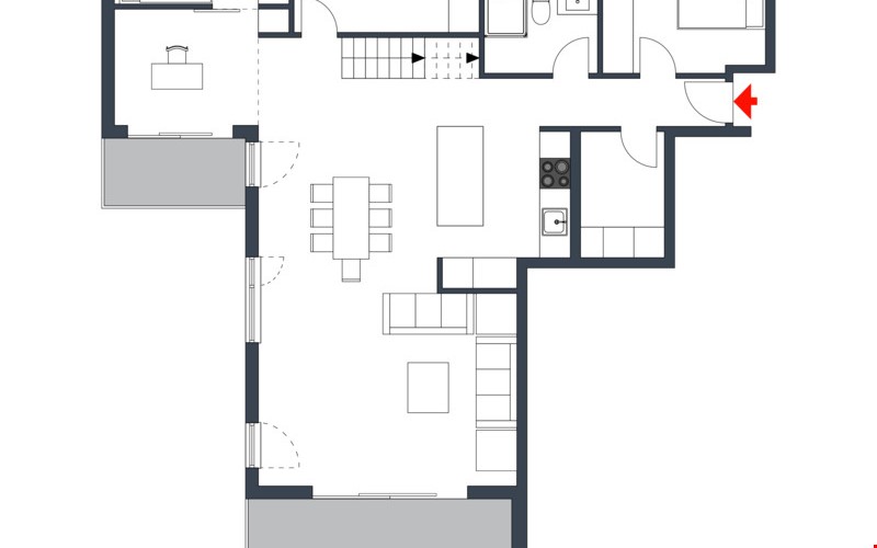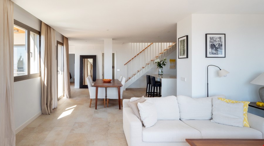 The modern penthouse in Palma was built in 2012 and offers 117 m² of living space with three bedrooms and two bathrooms. The open plan layout with a large kitchen and living room creates a bright and social atmosphere with direct access to two terraces. The property has underfloor heating and air conditioning in all rooms, providing high comfort all year round - an important factor for buyers looking for exclusive accommodation.