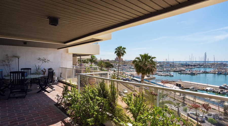 This exceptional corner residence enjoys a privileged position along Palma’s iconic Paseo Marítimo, offering breathtaking panoramic views over the harbour and an abundance of natural light from sunrise to sunset—an increasingly rare feature in this sought-after setting. With an expansive interior layout complemented by generous terraces, the property combines elegance, space and a seamless connection to its surroundings. The apartment comprises five spacious bedrooms, each with its own en-suite bathroom, while four of them also benefit from private balcony access, ensuring a high level of comfort and privacy for both residents and guests. The well-maintained building features a distinguished entrance hall, two lifts for convenient access, and a large communal swimming pool, perfect for enjoying the Mediterranean lifestyle. The property also includes two underground parking spaces, a valuable asset in this prime location. Just a short distance away, the vibrant neighbourhood of Santa Catalina and the historic centre of Palma offer an excellent selection of restaurants, boutiques and cultural attractions, making this a refined residence in one of the city’s most desirable areas.
