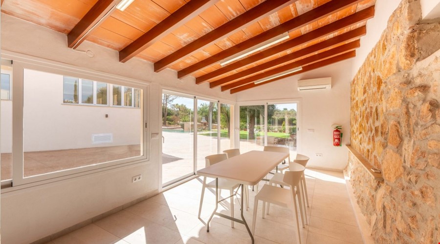 Spread over 477 m2 and 3 floors, this impressive finca in S'Aranjassa near Palma de Mallorca comes with a holiday rental license and offers a total of 5 bedrooms and 6 bathrooms. It features a living room with fireplace, a kitchen and dining area, as well as spacious terraces surrounding the house and its 50 m2 swimming pool with garden and barbecue area. The property also includes an underground garage for 4 cars and a separate guest or staff house with a living room with fireplace and an en-suite bathroom. High-quality features include aluminium double-glazed windows, rolling shutters, marble floors, central heating, ducted air conditioning, built-in wardrobes, alarm system, security door, and much more. The house captivates with its fantastic views of nature, privacy, and abundant natural light.Located in S'Aranjassa, a peaceful residential area on the outskirts of Palma de Mallorca, this property enjoys a setting that combines tranquility, space, and excellent connections to the rest of the island. Surrounded by nature and characterized by a well-maintained rural atmosphere, the surrounding area offers basic services, local restaurants, and easy access to supermarkets and shops nearby. Just a few minutes by car from Palma's city centre and the airport, S'Aranjassa stands out for its strategic location without compromising privacy and serenity. In addition, the beaches along the southern coast of the island are within easy reach, making it an ideal choice both as a permanent residence and for enjoying seaside getaways.This finca in S'Aranjassa represents a profitable investment, as it can serve as a secure and steady source of income, while also being perfect for personal enjoyment with family. A refreshing swim in the pool after work, a barbecue with friends, a family dinner followed by a movie on the couch in the evening — life in this modern finca in S'Aranjassa is the epitome of the Mediterranean family lifestyle. Here, you can enjoy comfort and tranquility that only a spacious home built with excellent, modern qualities can offer, fully equipped so you can simply arrive with your suitcase, hang your clothes in the wardrobe, and start enjoying your new home. Would you like us to show you this spectacular property?