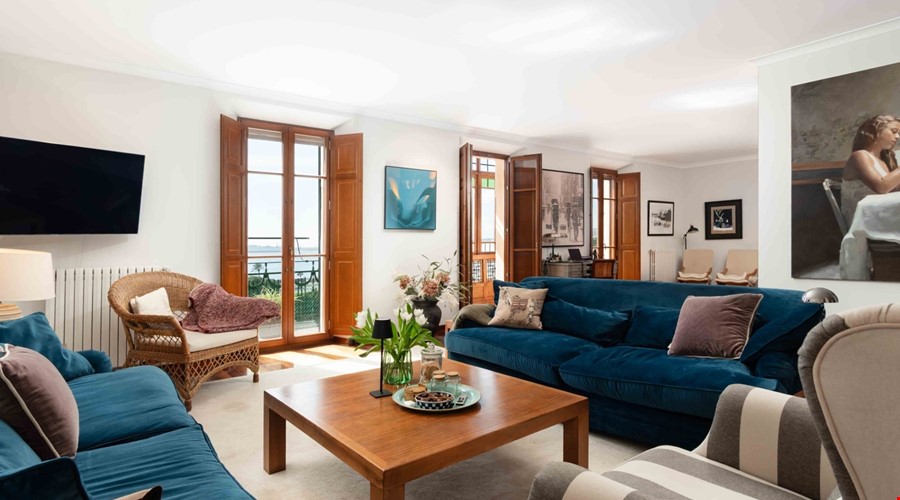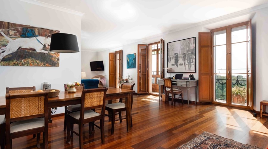 Nestled in the heart of Palma’s historic Calatrava district, this exceptional second-floor apartment forms part of a landmark building originally dating back over two hundred years and thoughtfully reformed in 1923 by renowned architect Guillermo Forteza. Positioned on Plaza Llorenç Villalonga, just steps from the Cathedral and the ancient city walls, the property enjoys a truly privileged setting. Through the characteristic enclosed Mallorcan glass balconies, you can take in stunning, unobstructed panoramic views of the sea and bay, where the light and atmosphere shift beautifully throughout the day. Offering 295 m2 of constructed area and 246 m2 of usable living space, the apartment features high wood-beamed ceilings, a beautifully renovated kitchen, three bedrooms, two bathrooms, a guest toilet, and spacious living areas—a flexible layout that can be adapted to suit a variety of lifestyles. Key features include a garage, a lift with direct private access to the apartment, and a private 25 sqm rooftop terrace, perfect for enjoying open sea views as well as the charm of the surrounding old town. There is also a community roof terrace area available for use. A rare opportunity to own a piece of Palma’s architectural heritage in one of the city’s most storied and sought-after neighbourhoods. Contact us to arrange your private viewing.