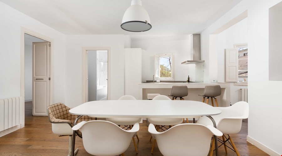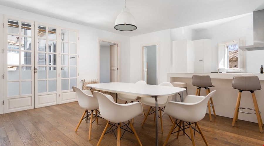 Exclusive penthouse in Santa Catalina – your dream home above the rooftops of Palma This elegant south-facing penthouse offers an exceptional living experience in one of Palma’s most vibrant and sought-after neighborhoods. Positioned on a bright corner, the property is filled with natural light and features a private rooftop terrace with captivating sea views, perfect for relaxing or entertaining above the city. Two balconies, one overlooking the lively street and another at the rear, provide additional outdoor spaces and a sense of openness. The interior combines timeless character with modern comfort, highlighted by beautiful original wooden floors, high ceilings and generously proportioned rooms. The layout includes two spacious bedrooms and two refined bathrooms, creating a harmonious balance of style and functionality. Renovated with care, the residence preserves its authentic charm while offering contemporary conveniences such as split air conditioning and central gas heating, ensuring year-round comfort. A distinctive and inviting home for those seeking a refined urban lifestyle with a touch of Mediterranean elegance.