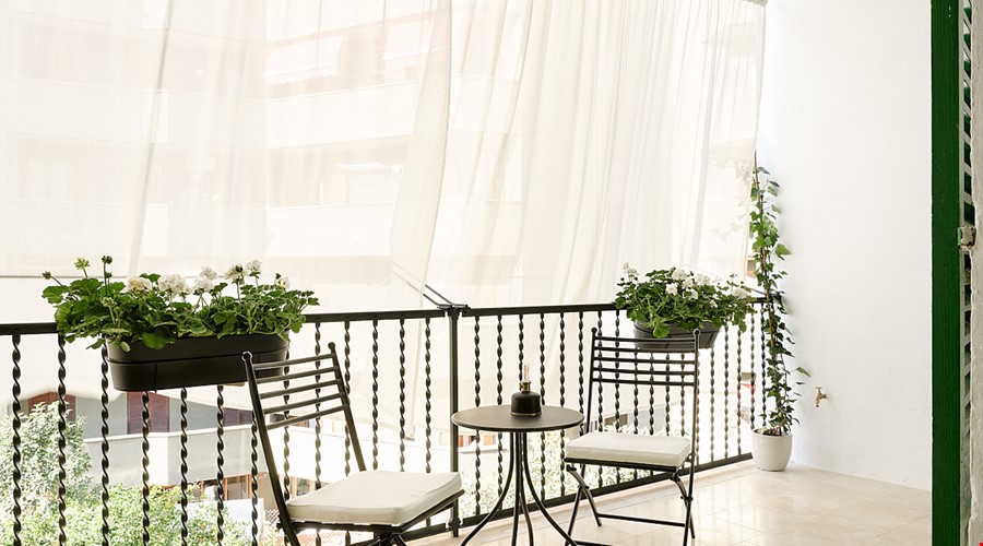 Two balconies (one facing the street and one overlooking a quiet inner patio)